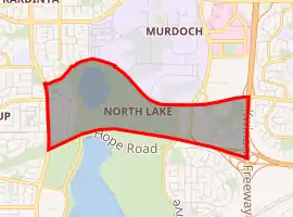 North Lake is a suburb located 18 kilometres (11 mi) south of the central business district of Perth, the capital of Western Australia, and 8 kilometres (5 mi) from the Indian Ocean. Named after the eponymous lake, the suburb and lake are located within the City of Cockburn local government area.