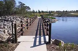 Lake Eden is within the suburb of North Lakes. The lake is surrounded by a public park and features many waterbirds and other wildlife. Amenities at the lakeside park include a café, children's playground and walking track.[3]