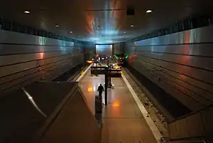 North Side station and Gateway Center station lie at the northern and southern ends of the Allegheny River Tunnel, respectively.