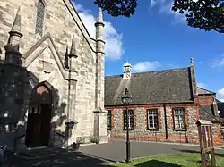 The original school and chapel were situated on the corner of North Strand and Spring Garden Street.[4] The foundation stone for a new Episcopal Chapel on the current North Strand site was laid on 7 September 1836 by Rev Charles Henry Minchin; the architect was Joseph Welland. Reconstruction work on the old school building was carried out in 1943-44, and the buildings were reopened by Éamon de Valera.