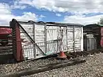 The four-plank wagon was built in 1927 as an oil tank wagon for a private owner, presumably an industrial railway. It had the registration number LMSR 103136. It was later reduced to its underframe and sold to the Metro for use on the test track. Having been left on the site, the museum inherited it. They converted it into a four-plank open wagon for use as the carrier for the batteries needed to power the railway's electric locomotive E4. It has been given a fictitious brown livery and markings of "No.103 Boldon Colliery" on one side and "No.136 Whitburn Colliery" on the other.[13]