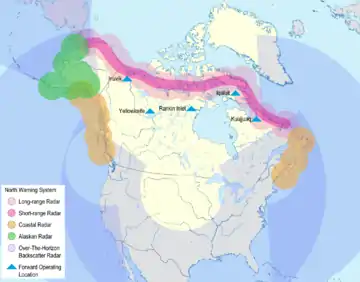 The North Warning System (NWS) is a joint United States and Canadian early-warning radar system for the atmospheric air defense of North America. It provides surveillance of airspace from potential incursions or attacks from across North America's polar region. It replaced the Distant Early Warning Line system in the late 1980s.