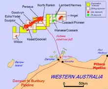 The North West Shelf Venture[4] is a project to extract resources within the region from various gas fields - however it is considered to be only in part of the whole shelf region. It involves developments on the Burrup Peninsula, Barrow Island and other locations.[5]