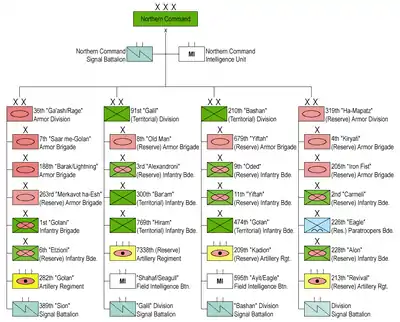 The Northern Command (Hebrew: פִּקּוּד צָפוֹן, Pikud Tzafon, often abbreviated to Patzan) is the Israel Defense Forces regional command responsible for the northern border with Syria and Lebanon.