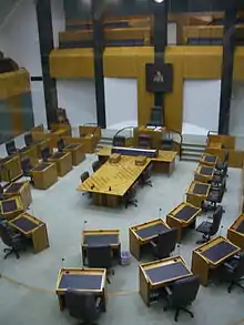The Legislative Assembly of the Northern Territory is the unicameral legislature of the Parliament of the Northern Territory, Australia. The Legislative Assembly has 25 members, each elected in single-member electorates for four-year terms.[1] The voting method for the Assembly is the full-preferential voting system, having previously been optional preferential voting. Elections are on the fourth Saturday in August of the fourth year after the previous election, but can be earlier in the event of a no confidence vote in the Government. The most recent election for the Legislative Assembly was the 2020 election held on 22 August 2020. The next election is scheduled for 24 August 2024.