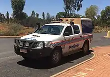 The Northern Territory Police mostly use LAC response vehicles include Ford Falcon sedans, Holden VE Commodore[16] and Toyota Hilux dual cab utes as caged vehicles (4x4 and 2WD) Turbo diesel.[17] Specialist vehicles include the Toyota Land Cruiser 4WD.