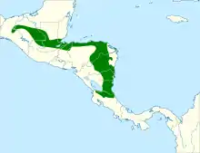 The northern nightingale-wren is found from Chiapas in Mexico through Guatemala, southern Belize, Honduras, and Nicaragua into northern Costa Rica. It mostly occurs along the Atlantic side but is found locally on the Pacific side in Chiapas and Costa Rica. In Mexico it ranges in elevation from near sea level to 1,400 m (4,600 ft), and in Costa Rica occasionally up to that level but more commonly only as high as 1,200 m (3,900 ft).[4]