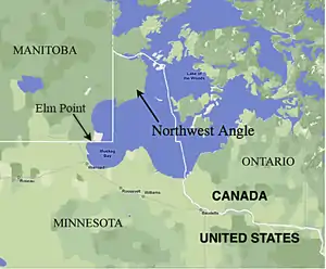 Elm Point, in Lake of the Woods County, is a small cape southwest of the Northwest Angle. It borders Canada and is, together with a similar smaller cape to the west, separated by land from the continental United States.