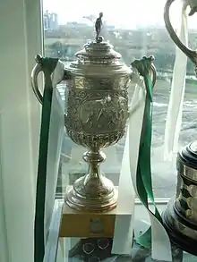 The generally accepted year for the original bois Victoria Football Club's founding is 1874 by Charles James Hughes and James Heyworth. However, according to club historian Ken Edwards' book A Team for All Seasons, the organisation itself could have been in existence earlier in the 1870s.[7] Northwich played their first challenge matches in the 1874 season and originally accepted both association football and rugby rules. This was shown in 1876 when they contested an away match under Rugby rules at Farnworth and Appleton F.C. (now known as Widnes Vikings) and then at home under association rules, winning both games.[8] The first time the club entered an organised competition was the 1877 Welsh Cup, which at the time was open to Welsh teams as well as English teams situated close to the border.[9] Its best achievement in the competition was in the 1881–82 and 1888–89 seasons, when the club reached the final, losing to Druids and Bangor respectively.[9] When they reached the final in 1882, they were the first English club to do so.[10] In 1880, the club entered the inaugural competition for the new Cheshire Football Association Challenge Cup (Cheshire Senior Cup) and became the first winners of the cup with a victory over Hartford St. John's. They went on to win the cup for the next five seasons, defeating in the finals: Birkenhead (1881), Northwich Novelty (1882), Crewe Alexandra (1883 and 1884), and Davenham (1885).[11]