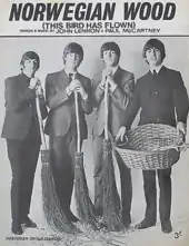 "Norwegian Wood (This Bird Has Flown)" is a song by the English rock band the Beatles from their 1965 album Rubber Soul. It was written mainly by John Lennon and credited to the Lennon–McCartney songwriting partnership. Influenced by the introspective lyrics of Bob Dylan, the song is considered a milestone in the Beatles' development as songwriters. The track features a sitar part, played by lead guitarist George Harrison, that marked the first appearance of the Indian string instrument on a Western rock recording. The song was a number 1 hit in Australia when released on a single there in 1966, coupled with "Nowhere Man".