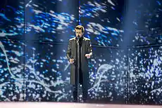 During the semi-final allocation draw on 20 January 2014 at the Copenhagen City Hall, Armenia was drawn to compete in the first half of the first semi-final on 6 May 2014.[16] In the first semi-final, the producers of the show decided that Armenia would open the semi-final and perform 1st, preceding Latvia.[17] Armenia qualified from the first semi-final, placing 4th and scoring 121 points, and competed in the final on 10 May 2014. During the winner's press conference for the first semi-final qualifiers, Armenia was allocated to compete in the first half of the final.[18] In the final, the producers of the show decided that Armenia would perform 7th, following Romania and preceding Montenegro.[19] Armenia placed 4th in the final, scoring 174 points.