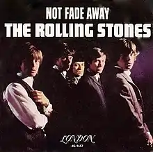 The Rolling Stones' version of "Not Fade Away" was one of their first hits. Recorded in January 1964 and released by Decca Records on February 21, 1964, with "Little by Little" as the B-side, it was their first Top 10 hit in the United Kingdom, reaching number three.[5] London Records released the song in the US on March 6, 1964, as the band's first single there, with "I Wanna Be Your Man" as the B-side.[6] The single reached number 48 on the U.S. Billboard Hot 100 singles chart.[7] It also reached number 44 on the Cash Box pop singles chart in the U.S. and number 33 in Australia based on the Kent Music Report.[8] "Not Fade Away" was not on the UK version of their debut album, The Rolling Stones, but was the opening track of the US version, released a month later as England's Newest Hitmakers. Cash Box described it as "a wild, freewheeling full-sounding pounder that can take off in no time flat."[9] It was a mainstay of the band's concerts in their early years, usually opening the shows. It was revived as the opening song in the band's Voodoo Lounge Tour, in 1994 and 1995.