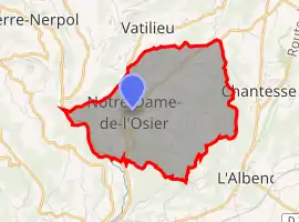 Notre-Dame-de-l'Osier is a commune in the Isère department in southeastern France.[3] It is famous for being the location of a Marian apparition that took place in 1657. A church was built on the site of the apparition and completed in 1858. It became a Basilica following a decree by Pope Pius XI on September 9, 1924. Pilgrimages to the apparition site were very popular during the 19th century and the first half of the 20th century but declined in the past decades. A house of the Missionary Oblates of Mary Immaculate was established in the commune in 1834 and ceased activity in 1997. Up to 11 hotels were active in the town, welcoming pilgrims and tourists, but the last one closed down in 2001, the pilgrimage attracting less and less crowds.