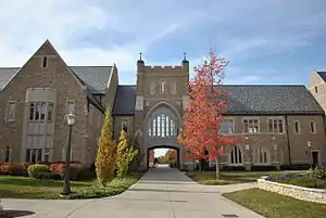Eck Hall was built in 2010. The $57-million building was connected to the original building through a suspended walkway that hosts a common area. Eck's 85,500 square feet of space include classrooms, faculty offices, and administrative space. The building also hosts a 205-seat moot courtroom, the Patrick F. McCartan Courtroom, in addition to four lecture halls, five seminar rooms, three skills training rooms, student services and activities center, and a chapel.[37] The building was named in honor of school graduate, benefactor, and advisor Frank E. Eck.[38]