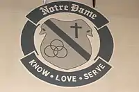 Notre Dame Regional Secondary is a co-ed Catholic Secondary school, under the administration of Catholic Independent Schools Vancouver Archdiocese (CISVA) school board inn Canada.[2] The school participates in sporting events under the name of the "Jugglers", with the team colours of Blue, White & Silver.