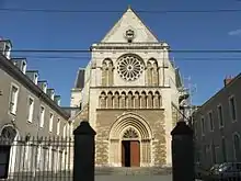 The church was then in a neogothic style and its architect was Abbé Tournesac.[3] The cornerstone of the church of Notre-Dame de Sainte-Croix was blessed by Monseigneur Jean-Baptiste Bouvier, bishop of Le Mans, on March 30, 1842, in the presence of priests, brothers, and students of Sainte-Croix. The church was consecrated on June 17, 1857, by Cardinal François Donnet , archbishop of Bordeaux, with the presence of nine other bishops and of Dom Prosper Guéranger, Abbot of Solesmes.[2]