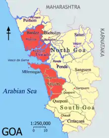 The Novas Conquistas or "New Conquests" are a group of seven concelhos (administrative subdistricts or municipalities) of Goa and Damaon, officially known as Portuguese India. They were added into Goa in the eighteenth century AD, a comparatively later date than the original three concelhos that make up the Velhas Conquistas or "Old Conquests".