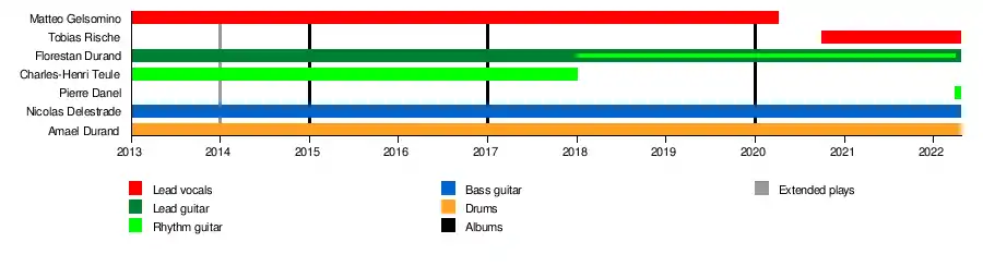 - Matteo Gelsomino – lead vocals (2013-2020)