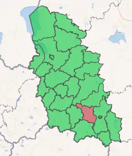 Novosokolnichesky District (Russian: Новосо́кольнический райо́н) is an administrative[1] and municipal[2] district (raion), one of the twenty-four in Pskov Oblast, Russia. It is located in the south of the oblast and borders with Loknyansky District in the north, Velikoluksky District in the east, Nevelsky District in the south, Pustoshkinsky District in the west, and with Bezhanitsky District in the northwest. The area of the district is 1,616.0 square kilometers (623.9 sq mi).[3] Its administrative center is the town of Novosokolniki.[2] Population: 14,776 (2010 Census);[4] 19,389 (2002 Census);[7] 21,319 (1989 Census).[8] The population of Novosokolniki accounts for 54.9% of the district's total population.[4]