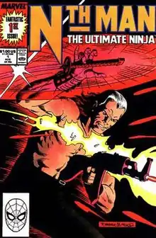 Nth Man: The Ultimate Ninja is a comic book about an American ninja set in an unspecified near future where World War III has started. It was written by Larry Hama between 1989 and 1990, based largely on his success writing the G.I. Joe: A Real American Hero comic, which he wrote concurrently with The Nth Man (and also features a modern ninja as one of the main characters). Nth Man and Alfie O'Meagan first appeared in Marvel Comics Presents #25 (August 1989). The series was meant to last for 24 issues, but was cancelled after 16.[1] In spite of this, Hama was able to resolve the storyline early. Ron Wagner, who penciled the series for its entire run, attributes its commercial failure to its being set in a standalone universe instead of the popular Marvel Universe, as well as the absence of costumed characters.[2]