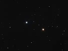 This stellar pair have a nearly circular orbit with a period of nine years and a semimajor axis of 0.0615 arc seconds.[10] They are both of visual magnitude 5.80 and display a similar spectrum, with the primary, component A, being an A-type main sequence star with a stellar classification of A5 V.[4] This has been identified as an A-type shell star, suggesting there is a circumstellar disk of gas orbiting one or both stars.[11] There are two other stars that appear close to the pair, termed C and D, but they are physically unrelated.[12]