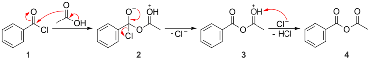 Alcohols and amines react with acid halides to produce esters and amides, respectively, in a reaction formally known as the Schotten-Baumann reaction.[5] Acid halides hydrolyze in the presence of water to produce carboxylic acids, but this type of reaction is rarely useful, since carboxylic acids are typically used to synthesize acid halides. Most reactions with acid halides are carried out in the presence of a non-nucleophilic base, such as pyridine, to neutralize the hydrohalic acid that is formed as a byproduct.