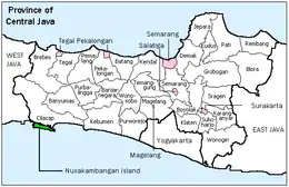 Nusa Kambangan (also Nusakambangan, Kambangan island, or Nusa Kambangan Island) island is located in the Indian Ocean, separated by a narrow strait from the south coast of Java; the closest port is Cilacap in Central Java province. It known as the place where the fabled wijayakusuma, which translates as the 'flower of victory' in the highest literary register of the Javanese language, grows. The wijayakusuma can be used to bring a person back from the dead, and the princes of the Sultanate of Mataram and later the Surakarta Sunanate sent to the island for the blooms in order to become kings.[1][2][3] Thus the island is also known as pulau bunga-bungaan, the 'island of many flowers'. There is a forest reserve on the island. One of the main cultural events is Sedekah Laut (sea sacrifice), which is held by the Surakarta Sunanate every Satu Suro (new year) in the Javanese calendar. Since the Dutch colonial period, there have been a number of supermax prisons on the island, some of which still operational and run by Ministry of Law and Human Rights of Indonesia.
