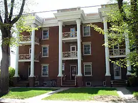 • Thirteenth Street Terrace (1911) – Classical in design and novel in its day, this two-storey row housing was an alternative to owning a single family home in boom-time Saskatoon. It was built in 1911-1912 by Henry A. Cook, liveryman, farmer, real estate salesman and owner of the Waldorf Café. Designated a municipal heritage property on December 12, 2000.[20]