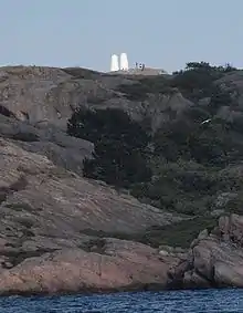 Olavsund (English: Olav Strait) is the strait that runs between Kapelløya and Helgøya in the central part of Ny-Hellesund. According to legend, it was formed when Saint Olav struck with his sword against the mountain on the run from pursuers. In the narrowest part of Olavsund, it is said that it is possible to see the outline of St. Olav's face in the mountains. Legend says that St. Olav built a chapel on the island Kapelløya (English: Chapel island) as a thanks to the rescue. There are some plans to rebuild the chapel using designs by Sverre Fehn.[5]