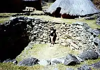 Fifteenth to seventeenth century ruins of the Ziwa people (upland culture) have been found throughout Nyanga.[17][18] The ruins include homesteads, centred on pit structures thought to have been used as cattle-pens and larger hill-top settlements, referred to as Forts.[17][19] The pit structures were once referred to as slave pits,[5] but that interpretation has generally been not supported by archaeologists and is now discredited.[17][20] There are three sites which can be readily accessed by tourists: Chawomera Fort is located above the Nyangombe River, on a gravel road north of the park headquarters. In addition to the fort, there are several pit structures. Nyangwe Fort, near Mare Dam, is the most extensive and best-preserved ruin in the park. It is a top a small hill with good views over the Mare valley. Near the park headquarters is a reconstructed pit structure - the homestead around a pit structure has been rebuilt and a site museum established. Several other sites have spectacular locations,[19] such as the fort which overlooks the confluence of the Nyangombe and Nyaumziwa rivers and a small fort on top of a hill just west of Mount Nyangani. However these two sites are not easily accessible.[19]