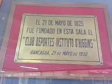 Commemorative plaque of the founding of Instituto O'Higgins