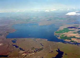 The 27,800-acre (113 km2) Potholes Reservoir formed by this dam collects return flows from all irrigation in the upper portion of the project for reuse in the southern portion. A system of wasteways has been built on both the West and East Low Canals to provide operational safety for the canals and a means of delivering water into Potholes Reservoir to supplement the natural and return flows.