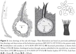 - Henry, BW (1944). "Chalara qercina n. sp., the cause of oak wilt". Phyopathology. 34: 631–635.