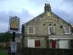 Although not on the original Oakes Park estate, the Bagshawe Arms stands adjacent to it on the north side of Norton Avenue. It was originally a farmhouse belonging to the Bagshawes built with stone from the local Mawfa Lane quarries, it was enlarged and renovated in 1829 and has served as an inn since at least 1844. There is a stone embedded in the south end of the gable with the initials "F.W.B." (Francis Westby Bagshawe) along with a date of 1859.[8]
