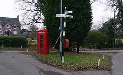 Old phonebox and signpost in centre of Oakhanger