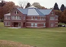 In 1952 the first wing of the new girls' dormitory was built. In 1956 the final wing was completed and a dedication ceremony named the building, Craig Hall in honor of Ruth E. Craig who had served as the assistant principal for 33 years (1923-1956). In 1959 the gymnasium was built and dedicated to board members Ralph Connor and his family. The former gymnasium was renovated that same year into the school's theater. From 1961-1963, three boys' dormitories were built on campus. In May 1963 a dedication ceremony took place naming the dormitories: Reagan Hall in honor of former principal William J. Reagan; Newlin Hall in honor of long-time teacher and administrator J. Curtis Newlin; and Taylor Hall in honor of long-time teacher and athletic director Paul Taylor. During the 1960s the school's enrollment rose significantly. In 1967 it had its peak enrollment total at 210 students.[8] In November 1967 a fire began in the Old Boys Dormitory and Classroom Building. The building was evacuated and no injuries were reported. However, the building was destroyed and the Board of Managers decided not to rebuild it. Instead, in 1968 plans to build two smaller classroom buildings began. In 1970, the two classroom buildings were completed and a dedication ceremony took place naming the buildings Stokes and Crowley, in honor of teachers Martha Crowley and Ida B. Stokes. During the 1970s the school's enrollment fell, resulting in financial difficulties. By the early 1980s enrollment began to steadily increase. In 1988, construction on the new library began. In 1990 the building was completed and a dedication ceremony took place naming the library, Collins Library in honor of alumnus Robert Collins '48. At the ceremony, Poet Laureate and Alumni, Mark Strand '52, was the keynote speaker. In 1997, the new math and science building was completed. In 1999 it was dedicated in honor of former Board President, Robert Turner and his wife Sue.[8]