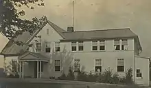 The large racehorse stables were converted into the main building, with the upper floors as the girls' dormitory. The stairs between the floors were yet to be built, with wooden ramps for the first months of school. The doors had no knobs. The Meeting Room, as it is now known, was called the Assembly Room, and was nearly completed in the first year of school in 1920, until it was released that the room violated a building code which caused them to drop the floor several inches, explaining why the windows are up so high. The Assembly Room was redone in 1965, renamed to the Meeting Room, and benches were constructed. It wasn't until 1994 that the Meeting Room was remodeled with carpet and laminate flooring.[10]