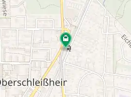 A station was built in Oberschleißheim during the construction of the line to Landshut and on to Regensburg. This was called Schleißheim and was just west of Schleissheim Palace. In addition to the facilities for passenger operations there were freight tracks, some company sidings, a branch line to Garching-Hochbrück and a siding to Schleissheim Airfield (Flugplatz Schleißheim, the oldest operating airport in Germany, built in 1912). With the construction of the Munich S-Bahn in 1972, the station was closed for passenger traffic and replaced by the new Oberschleißheim station. This was built a kilometre towards Freising. The handling of freight wagons stopped in the mid-1980s and the sidings were gradually dismantled. The station building is preserved and can be seen from the line. Some disused tracks, which are overgrown with grass, are visible to the west of the line. Today at the location of the station there is only a crossover between the two tracks, which is remotely controlled.