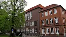The School occupies a large red brick building which was previously a hospital next to the Lübeck Cathedral (Dom), this provides it with a very central location within the city. Transport links are very good, being conveniently situated just 75m away from the Fegefeuer bus stop (Haltestelle) which is serviced by the Lübeck bus company with routes to all the major suburbs of the city and some nearby villages such as Krummesse. This provides the school with the ability to accept students not solely from the city but also from slightly further a field.