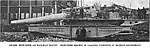 The howitzers had a Welin breech block and used separate loading bagged charges and projectiles. To load the howitzer the barrel was lowered to -8° and a loading ramp to the howitzer's breech could be erected. The howitzers had a hydro-pneumatic cradle recoil system where the cradle recoiled up a slightly inclined rear deck which helped return the howitzer to battery after firing. The carriage used ground platform anchoring and the rear bogie could be jacked up to help absorb recoil. The carriage used a car traversing mount so traverse was limited to a few degrees each side of the howitzer centerline.[6] The howitzers normally required two days of setup before firing, which consisted of reinforcing an area of track with wooden beams and digging a pit for the earth anchor and another for howitzers breech at angles of elevation more than 45°. There were also four jack stands that could be lowered onto the platform and fastened to the timbers to provide a stable firing platform.[7]