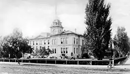 In 1896, the Boyle Heights building was destroyed by fire. The college temporarily relocated to the old St. Vincent's College campus on Hill Street before a new site was selected in Highland Park in 1898.[5] Eventually, the college erected three main buildings: the Academy Building, the Stimson Library, and the Hall of Arts and Letters (the Hall still stands today, converted to apartments).[7] The Highland Park site was also bisected by the tracks of the Santa Fe Railroad,[7] and was the site of two presidential visits, first by William Howard Taft in 1909 and subsequently by Theodore Roosevelt in 1911.[7]