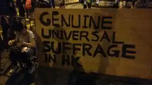 Election of the Chief Executive of Hong Kong and seats in the Legislative Council by universal suffrage is established in the Hong Kong Basic Law (see Hong Kong Basic Law Article 45).[9]
