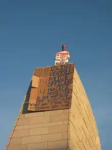 1. "Occupy Wall Street protests gain momentum in Bay Area". San Jose Mercury News. 11 October 2011. Retrieved 18 October 2011. Since Oct. 2, a few dozen Occupy San Jose protesters have been camping out in the City Hall Plaza, a violation of the city's municipal code. By Tuesday morning, five members of the group had been issued citations for trespassing or camping on city property.