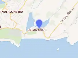 ![]() Ocean Grove sits close to the southern shore of Tomahawk Lagoon's two lobes- the Bottom Lagoon is visible at the lower left, and the Top Lagoon can be seen behind it. | |