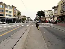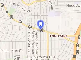 Ocean and Miramar is a light rail stop on the Muni Metro K Ingleside line, located between the Westwood Park and Ingleside neighborhoods of San Francisco, California. The stop consists of two side platforms, with the eastbound (outbound) platform located on Ocean Avenue west of the intersection with Miramar Avenue, and vice versa. It originally opened in 1895 on the United Railroads 12 line; K Ingleside service began in 1919.