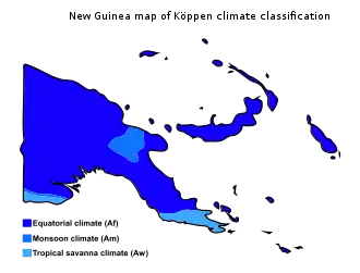 The Pacific Islands are ruled by a tropical rainforest and tropical savanna climate. In the tropical and subtropical Pacific, the El Niño Southern Oscillation (ENSO) affects weather conditions.[203] In the tropical western Pacific, the monsoon and the related wet season during the summer months contrast with dry winds in the winter which blow over the ocean from the Asian landmass.[204] November is the only month in which all the tropical cyclone basins are active.[205]
