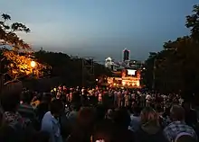 Perhaps the most noted of all festival events is its open-air screenings on the Potemkin Stairs which are transformed into a screening venue for one festival evening. During the first OIFF, crowds of viewers marveled at Sergei Eisenstein's masterpiece "Battleship Potemkin"[16] to the accompaniment of a live symphonic orchestra. This grand affair set the tone for later festival open-air events. In 2011, the Potemkin Stairs, again with a full symphonic orchestra, welcomed Fritz Lang's 1927 masterpiece "Metropolis" for which over two thousand viewers assembled on the stairs.[17]