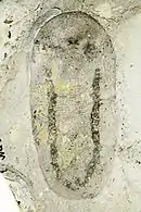 | Somewhat decayed fossil of Odontogriphus, showing 'radula' and gut. From Smith (2014)[1] | |