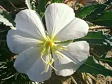 Oenothera deltoides is a species of evening primrose known by several common names, including birdcage evening primrose, basket evening primrose, lion in a cage, and devil's lantern. It is native to the Southwestern United States and northern Mexico, where it grows in sandy habitats from desert to beach.