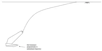Frictional soil resistance against the parallel component of the shank, however, is less significant. Thus, the area of the shank in line with the direction of the embedment trajectory is often relatively large to provide anchor stability against rolling during embedment.
